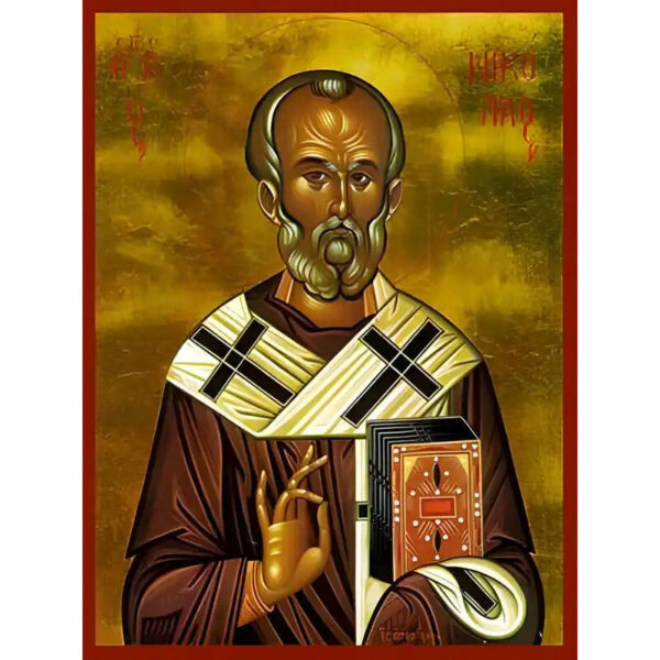 Εικόνα Ορθοδοξίας με περίγραμμα χρυσό σε ξύλο Φλαμουρίας με βάση Εικόνα ΑΓΙΟΣ ΝΙΚΟΛΑΟΣ, ΑΡΧΙΕΠΙΣΚΟΠΟΣ ΜΥΡΩΝ ΛΥΚΙΑΣ Χειροποίητη Ελληνορθόδοξη εικόνα του Ιησού Χριστού, Κρεμαστή πλάκα βυζαντινής τέχνης, χριστιανική τέχνη Διάσταση 15×11 cm (5,9×4,3 ίντσες) INTRAEK-337757864680