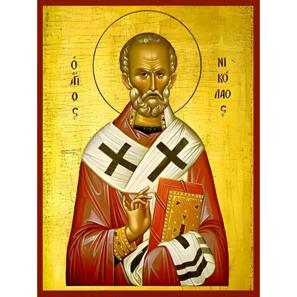 Εικόνα Ορθοδοξίας με περίγραμμα χρυσό σε ξύλο Φλαμουρίας με βάση Εικόνα ΑΓΙΟΣ ΝΙΚΟΛΑΟΣ, ΑΡΧΙΕΠΙΣΚΟΠΟΣ ΜΥΡΩΝ ΛΥΚΙΑΣ Χειροποίητη Ελληνορθόδοξη εικόνα του Ιησού Χριστού, Κρεμαστή πλάκα βυζαντινής τέχνης, χριστιανική τέχνη Διάσταση 15×11 cm (5,9×4,3 ίντσες) INTRAEK-337757864678