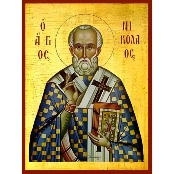 Εικόνα Ορθοδοξίας με περίγραμμα χρυσό σε ξύλο Φλαμουρίας με βάση Εικόνα ΑΓΙΟΣ ΝΙΚΟΛΑΟΣ, ΑΡΧΙΕΠΙΣΚΟΠΟΣ ΜΥΡΩΝ ΛΥΚΙΑΣ Χειροποίητη Ελληνορθόδοξη εικόνα του Ιησού Χριστού, Κρεμαστή πλάκα βυζαντινής τέχνης, χριστιανική τέχνη Διάσταση 15×11 cm (5,9×4,3 ίντσες) INTRAEK-337757864675