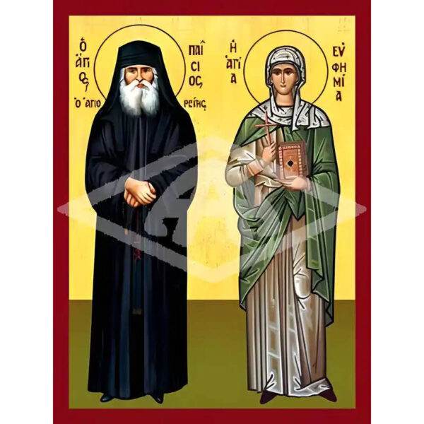 Εικόνα Ορθοδοξίας με περίγραμμα χρυσό σε ξύλο Φλαμουρίας με βάση Εικόνα ΑΓΙΟΣ ΠΑΙΣΙΟΣ ΑΓΙΟΡΕΙΤΗΣ ΚΑΙ ΑΓΙΑ ΕΥΦΗΜΙΑ ΜΕΓΑΛΟΜΑΡΤΥΣ, ΟΛΟΣΩΜΟΙ Χειροποίητη Ελληνορθόδοξη εικόνα του Ιησού Χριστού, Κρεμαστή πλάκα βυζαντινής τέχνης, χριστιανική τέχνη Διάσταση 15×11 cm (5,9×4,3 ίντσες) INTRAEK-337757864648