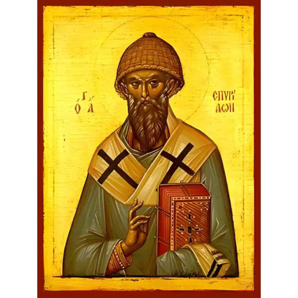 Εικόνα Ορθοδοξίας με περίγραμμα χρυσό σε ξύλο Φλαμουρίας με βάση Εικόνα ΑΓΙΟΣ ΣΠΥΡΙΔΩΝ, ΕΠΙΣΚΟΠΟΣ ΤΡΙΜΥΘΟΥΝΤΟΣ ΚΥΠΡΟΥ Χειροποίητη Ελληνορθόδοξη εικόνα του Ιησού Χριστού, Κρεμαστή πλάκα βυζαντινής τέχνης, χριστιανική τέχνη Διάσταση 15×11 cm (5,9×4,3 ίντσες) INTRAEK-337757864589