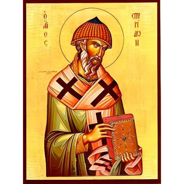 Εικόνα Ορθοδοξίας με περίγραμμα χρυσό σε ξύλο Φλαμουρίας με βάση Εικόνα ΑΓΙΟΣ ΣΠΥΡΙΔΩΝ, ΕΠΙΣΚΟΠΟΣ ΤΡΙΜΥΘΟΥΝΤΟΣ ΚΥΠΡΟΥ Χειροποίητη Ελληνορθόδοξη εικόνα του Ιησού Χριστού, Κρεμαστή πλάκα βυζαντινής τέχνης, χριστιανική τέχνη Διάσταση 15×11 cm (5,9×4,3 ίντσες) INTRAEK-337757864588