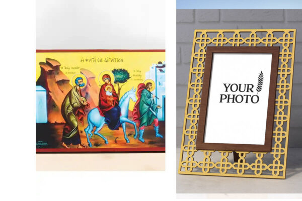 Εικόνα Ορθοδοξίας Πολυτελείας με σχεδιο Σταυρούς μαζι με Βάση σε 8 χρώματα με περίγραμμα χρυσό σε ξύλο Plywood (Πλακάζ) με βάση Ο Ιησούς Χριστός η Απόδραση στην Αίγυπτο, Ξύλινη Χειροποίητη Εικόνα Ελληνικού Premium Βυζαντινού Στυλ Κρεμασμένο σε ξύλινη πλάκα Θρησκευτικό θέμα Χειροποίητη Ελληνορθόδοξη εικόνα του Ιησού Χριστού, Κρεμαστή πλάκα βυζαντινής τέχνης, χριστιανική τέχνη Διάσταση 10×7 cm (3,9 x 2,8 ίντσες) INTRAEK3kadro3211-11116