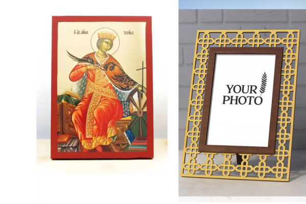 Εικόνα Ορθοδοξίας Πολυτελείας με σχεδιο Σταυρούς μαζι με Βάση σε 8 χρώματα με περίγραμμα χρυσό σε ξύλο Plywood (Πλακάζ) με βάση Αγία Αικατερίνη της Αλεξάνδρειας, Ξύλινη Χειροποίητη Εικόνα με Χρυσό Φύλλο Ελληνικό Premium Βυζαντινού Στυλ Κρεμαστό στον τοίχο Θρησκευτικό Θέμα Χειροποίητη Ελληνορθόδοξη εικόνα του Ιησού Χριστού, Κρεμαστή πλάκα βυζαντινής τέχνης, χριστιανική τέχνη Διάσταση 10×7 cm (3,9 x 2,8 ίντσες) INTRAEK3kadro3211-11110