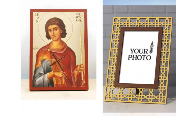 Εικόνα Ορθοδοξίας Πολυτελείας με σχεδιο Σταυρούς μαζι με Βάση σε 8 χρώματα με περίγραμμα χρυσό σε ξύλο Plywood (Πλακάζ) με βάση Άγιος Φανούριος ο Νεοφανής, Ξύλινη Χειροποίητη Εικόνα με χρυσό φύλλο θρησκευτικό θέμα Ελληνικό Premium Βυζαντινού Στυλ σε τοίχο Χειροποίητη Ελληνορθόδοξη εικόνα του Ιησού Χριστού, Κρεμαστή πλάκα βυζαντινής τέχνης, χριστιανική τέχνη Διάσταση 10×7 cm (3,9 x 2,8 ίντσες) INTRAEK3kadro3211-11093