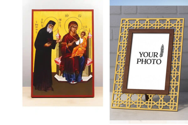 Εικόνα Ορθοδοξίας Πολυτελείας με σχεδιο Σταυρούς μαζι με Βάση σε 8 χρώματα με περίγραμμα χρυσό σε ξύλο Plywood (Πλακάζ) με βάση Άγιος Παΐσιος με την Παναγία και τον Ιησού Χριστό, Ξύλινη Χειροποίητη Εικόνα Ελληνικού Βυζαντινού Στυλ Κρεμασμένη σε ξύλινη πλάκα Χειροποίητη Ελληνορθόδοξη εικόνα του Ιησού Χριστού, Κρεμαστή πλάκα βυζαντινής τέχνης, χριστιανική τέχνη Διάσταση 10×7 cm (3,9 x 2,8 ίντσες) INTRAEK3kadro3211-11089