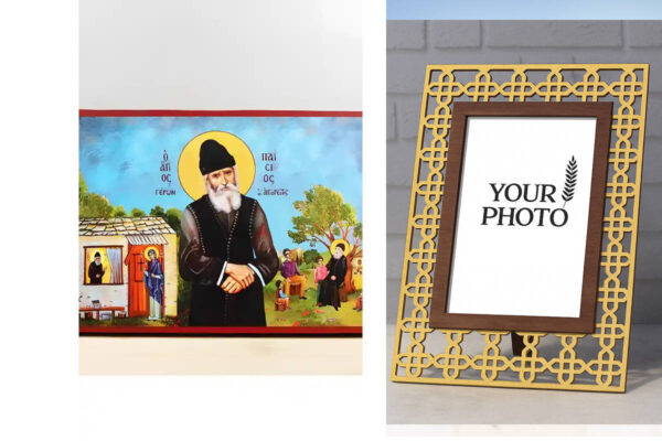 Εικόνα Ορθοδοξίας Πολυτελείας με σχεδιο Σταυρούς μαζι με Βάση σε 8 χρώματα με περίγραμμα χρυσό σε ξύλο Plywood (Πλακάζ) με βάση Άγιος Παΐσιος ο Αγιορείτης Κάθετη, Ξύλινη Χειροποίητη Εικόνα Ελληνικής Premium Βυζαντινού Στυλ Κρεμαστή σε ξύλινη πλάκα Θρησκευτικό Θέμα Χειροποίητη Ελληνορθόδοξη εικόνα του Ιησού Χριστού, Κρεμαστή πλάκα βυζαντινής τέχνης, χριστιανική τέχνη Διάσταση 10×7 cm (3,9 x 2,8 ίντσες) INTRAEK3kadro3211-11219