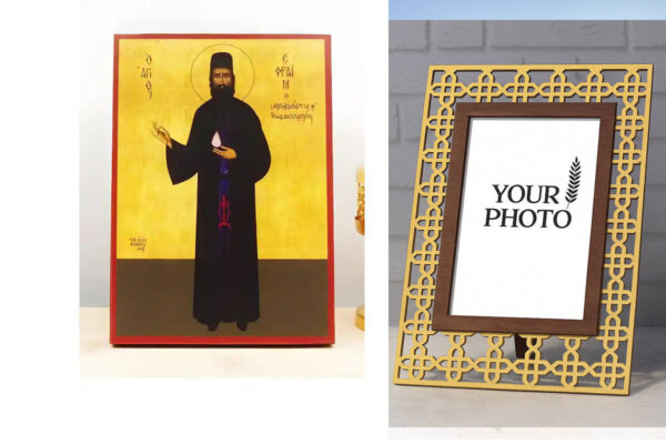 Εικόνα Ορθοδοξίας Πολυτελείας με σχεδιο Σταυρούς μαζι με Βάση σε 8 χρώματα με περίγραμμα χρυσό σε ξύλο Plywood (Πλακάζ) με βάση Άγιος Εφραίμ Νέας Μάκρης ο Νεομάρτυς Ολόσωμος, Ξύλινη Χειροποίητη Εικόνα Ελληνικής Βυζαντινής Τεχνοτροπίας Κρεμαστή σε ξύλινη πλάκα Χειροποίητη Ελληνορθόδοξη εικόνα του Ιησού Χριστού, Κρεμαστή πλάκα βυζαντινής τέχνης, χριστιανική τέχνη Διάσταση 10×7 cm (3,9 x 2,8 ίντσες) INTRAEK3kadro3211-11067