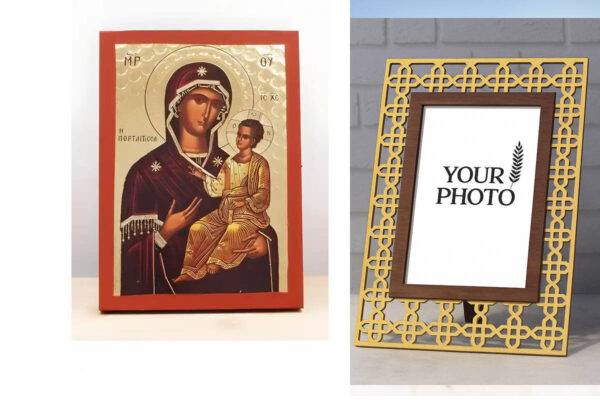 Εικόνα Ορθοδοξίας Πολυτελείας με σχεδιο Σταυρούς μαζι με Βάση σε 8 χρώματα με περίγραμμα χρυσό σε ξύλο Plywood (Πλακάζ) με βάση Παναγία Οδηγήτρια με τον Ιησού, Ξύλινη Χειροποίητη Εικόνα με ψηφιακή εκτύπωση Χαρακτικό Ελληνικού Βυζαντινού Στυλ Τοίχου Κρεμασμένο σε ξύλινη πλάκα Χειροποίητη Ελληνορθόδοξη εικόνα του Ιησού Χριστού, Κρεμαστή πλάκα βυζαντινής τέχνης, χριστιανική τέχνη Διάσταση 10×7 cm (3,9 x 2,8 ίντσες) INTRAEK3kadro3211-11060