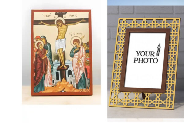Εικόνα Ορθοδοξίας Πολυτελείας με σχεδιο Σταυρούς μαζι με Βάση σε 8 χρώματα με περίγραμμα χρυσό σε ξύλο Plywood (Πλακάζ) με βάση Η Σταύρωση και ο Θάνατος του Ιησού Χριστού, Ξύλινη Χειροποίητη Εικόνα με χρυσό φύλλο Ελληνικού Βυζαντινού Στυλ Κρεμασμένο σε ξύλινη πλάκα Χειροποίητη Ελληνορθόδοξη εικόνα του Ιησού Χριστού, Κρεμαστή πλάκα βυζαντινής τέχνης, χριστιανική τέχνη Διάσταση 10×7 cm (3,9 x 2,8 ίντσες) INTRAEK3kadro3211-10998