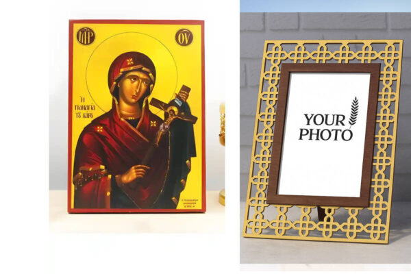 Εικόνα Ορθοδοξίας Πολυτελείας με σχεδιο Σταυρούς μαζι με Βάση σε 8 χρώματα με περίγραμμα χρυσό σε ξύλο Plywood (Πλακάζ) με βάση Παναγία του Χάρου με τον Ιησού Εσταυρωμένο, Ξύλινη Χειροποίητη Εικόνα Ελληνικού Premium Βυζαντινού Στυλ τοίχου Κρεμασμένη σε ξύλινη πλάκα Θρησκευτικό Χειροποίητη Ελληνορθόδοξη εικόνα του Ιησού Χριστού, Κρεμαστή πλάκα βυζαντινής τέχνης, χριστιανική τέχνη Διάσταση 10×7 cm (3,9 x 2,8 ίντσες) INTRAEK3kadro3211-10960