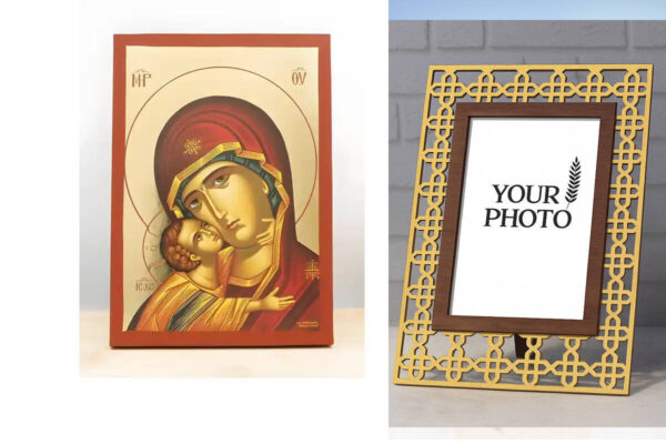 Εικόνα Ορθοδοξίας Πολυτελείας με σχεδιο Σταυρούς μαζι με Βάση σε 8 χρώματα με περίγραμμα χρυσό σε ξύλο Plywood (Πλακάζ) με βάση Παναγία με πορτρέτο του Ιησού, Ξύλινη χειροποίητη εικόνα με χρυσό φύλλο επιτοίχιας ελληνικής βυζαντινής τεχνοτροπίας Premium Χειροποίητη Ελληνορθόδοξη εικόνα του Ιησού Χριστού, Κρεμαστή πλάκα βυζαντινής τέχνης, χριστιανική τέχνη Διάσταση 10×7 cm (3,9 x 2,8 ίντσες) INTRAEK3kadro3211-10947