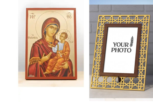 Εικόνα Ορθοδοξίας Πολυτελείας με σχεδιο Σταυρούς μαζι με Βάση σε 8 χρώματα με περίγραμμα χρυσό σε ξύλο Plywood (Πλακάζ) με βάση Παναγία Οδηγήτρια “Γρηγορούσα” με τον Ιησού, Ξύλινη Χειροποίητη Εικόνα με Αλουμινόχαρτο Ελληνικής Βυζαντινής Στυλ επιτοίχιας Χειροποίητη Ελληνορθόδοξη εικόνα του Ιησού Χριστού, Κρεμαστή πλάκα βυζαντινής τέχνης, χριστιανική τέχνη Διάσταση 10×7 cm (3,9 x 2,8 ίντσες) INTRAEK3kadro3211-10913