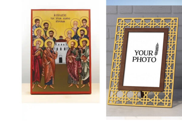 Εικόνα Ορθοδοξίας Πολυτελείας με σχεδιο Σταυρούς μαζι με Βάση σε 8 χρώματα με περίγραμμα χρυσό σε ξύλο Plywood (Πλακάζ) με βάση Σύναξη των Δώδεκα Αποστόλων, Ξύλινη Χειροποίητη Εικόνα Ελληνικού Premium Βυζαντινού Στυλ Κρεμασμένο σε ξύλινη πλάκα Θρησκευτικό θέμα Χειροποίητη Ελληνορθόδοξη εικόνα του Ιησού Χριστού, Κρεμαστή πλάκα βυζαντινής τέχνης, χριστιανική τέχνη Διάσταση 10×7 cm (3,9 x 2,8 ίντσες) INTRAEK3kadro3211-10900