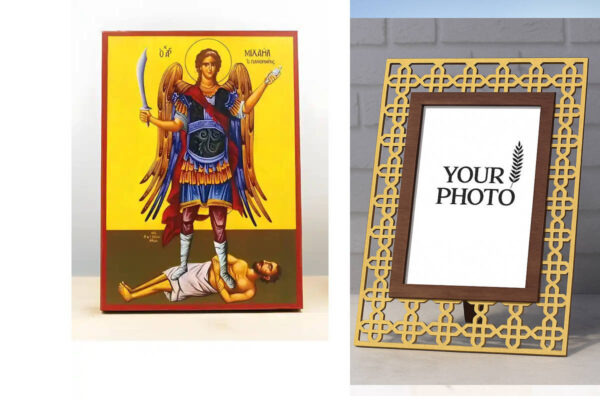 Εικόνα Ορθοδοξίας Πολυτελείας με σχεδιο Σταυρούς μαζι με Βάση σε 8 χρώματα με περίγραμμα χρυσό σε ξύλο Plywood (Πλακάζ) με βάση Αρχάγγελος Μιχαήλ Πανορμίτης Σύμης Ολόσωμο, Ξύλινη Χειροποίητη Εικόνα Ελληνικού Βυζαντινού Στυλ Κρεμαστή σε Ξυλόπλακα Θρησκευτικό Θέμα Χειροποίητη Ελληνορθόδοξη εικόνα του Ιησού Χριστού, Κρεμαστή πλάκα βυζαντινής τέχνης, χριστιανική τέχνη Διάσταση 10×7 cm (3,9 x 2,8 ίντσες) INTRAEK3kadro3211-10846