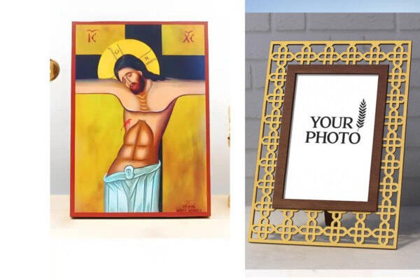 Εικόνα Ορθοδοξίας Πολυτελείας με σχεδιο Σταυρούς μαζι με Βάση σε 8 χρώματα με περίγραμμα χρυσό σε ξύλο Plywood (Πλακάζ) με βάση Ο Ιησούς Χριστός Εσταυρωμένος, Ξύλινη Χειροποίητη Εικόνα Ελληνικού Premium Βυζαντινού Στυλ Κρεμασμένος σε ξύλινη πλάκα Θρησκευτικό θέμα Χειροποίητη Ελληνορθόδοξη εικόνα του Ιησού Χριστού, Κρεμαστή πλάκα βυζαντινής τέχνης, χριστιανική τέχνη Διάσταση 10×7 cm (3,9 x 2,8 ίντσες) INTRAEK3kadro3211-10836