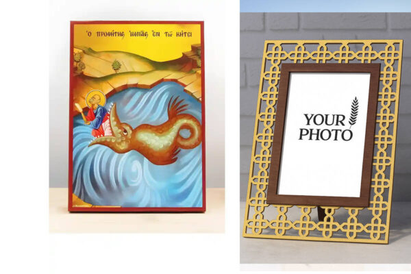 Εικόνα Ορθοδοξίας Πολυτελείας με σχεδιο Σταυρούς μαζι με Βάση σε 8 χρώματα με περίγραμμα χρυσό σε ξύλο Plywood (Πλακάζ) με βάση Ο Άγιος Προφήτης Ιωνάς και η Φάλαινα, Ξύλινη Χειροποίητη Εικόνα Ελληνικού Premium Βυζαντινού Στυλ Κρεμασμένο σε ξύλινη πλάκα Θρησκευτικό θέμα Χειροποίητη Ελληνορθόδοξη εικόνα του Ιησού Χριστού, Κρεμαστή πλάκα βυζαντινής τέχνης, χριστιανική τέχνη Διάσταση 10×7 cm (3,9 x 2,8 ίντσες) INTRAEK3kadro3211-10815