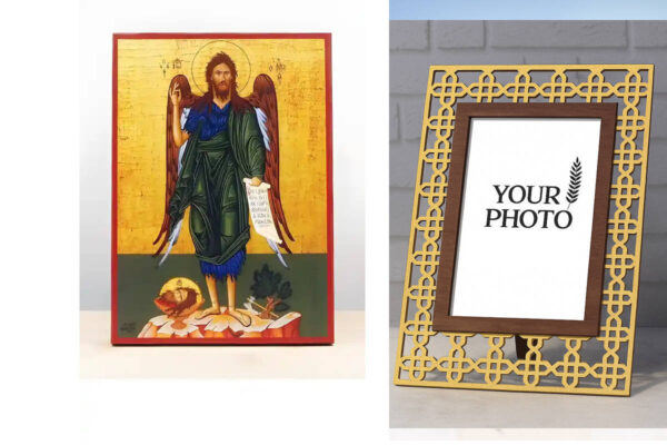 Εικόνα Ορθοδοξίας Πολυτελείας με σχεδιο Σταυρούς μαζι με Βάση σε 8 χρώματα με περίγραμμα χρυσό σε ξύλο Plywood (Πλακάζ) με βάση Άγιος Ιωάννης ο Βαπτιστής Άγγελος της Ερήμου, Ξύλινη Χειροποίητη Εικόνα Ελληνικού Premium Βυζαντινού Στυλ Κρεμασμένο σε ξύλινη πλάκα Θρησκευτικό θέμα Χειροποίητη Ελληνορθόδοξη εικόνα του Ιησού Χριστού, Κρεμαστή πλάκα βυζαντινής τέχνης, χριστιανική τέχνη Διάσταση 10×7 cm (3,9 x 2,8 ίντσες) INTRAEK3kadro3211-10809