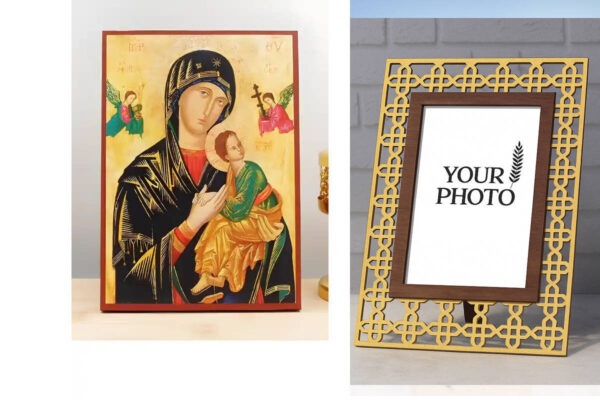 Εικόνα Ορθοδοξίας Πολυτελείας με σχεδιο Σταυρούς μαζι με Βάση σε 8 χρώματα με περίγραμμα χρυσό σε ξύλο Plywood (Πλακάζ) με βάση Παναγία της Αιώνιας Βοήθειας με τον Ιησού, Ξύλινη Χειροποίητη Εικόνα Ελληνικού Βυζαντινού Στυλ σε τοίχο Κρεμαστή σε Ξυλόπλακα Θρησκευτικό θέμα Χειροποίητη Ελληνορθόδοξη εικόνα του Ιησού Χριστού, Κρεμαστή πλάκα βυζαντινής τέχνης, χριστιανική τέχνη Διάσταση 10×7 cm (3,9 x 2,8 ίντσες) INTRAEK3kadro3211-10804
