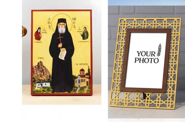 Εικόνα Ορθοδοξίας Πολυτελείας με σχεδιο Σταυρούς μαζι με Βάση σε 8 χρώματα με περίγραμμα χρυσό σε ξύλο Plywood (Πλακάζ) με βάση Άγιος Παΐσιος ο Αθωνίτης, Ξύλινη Χειροποίητη Εικόνα Ελληνικής Premium Βυζαντινού Στυλ Κρεμαστή σε ξύλινη πλάκα Θρησκευτικό θέμα Χειροποίητη Ελληνορθόδοξη εικόνα του Ιησού Χριστού, Κρεμαστή πλάκα βυζαντινής τέχνης, χριστιανική τέχνη Διάσταση 15×11 cm (5,9 x 4,3 ίντσες) INTRAEK3kadro3211-611218