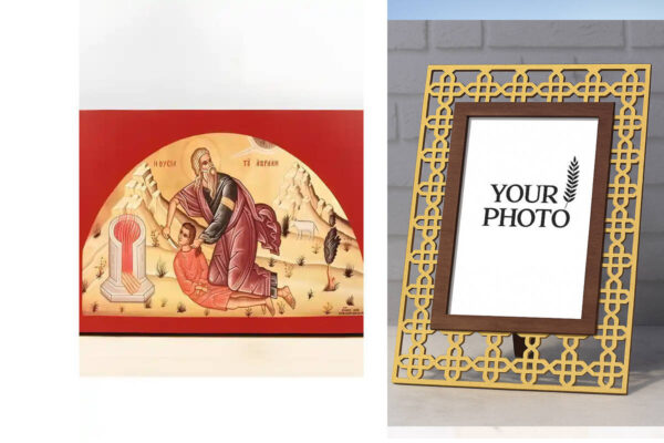 Εικόνα Ορθοδοξίας Πολυτελείας με σχεδιο Σταυρούς μαζι με Βάση σε 8 χρώματα με περίγραμμα χρυσό σε ξύλο Plywood (Πλακάζ) με βάση The Sacrifice of Abraham, Ξύλινη Χειροποίητη Εικόνα Ελληνικού Premium Βυζαντινού Στυλ Κρεμασμένος σε ξύλινη πλάκα Θρησκευτικό θέμα Χειροποίητη Ελληνορθόδοξη εικόνα του Ιησού Χριστού, Κρεμαστή πλάκα βυζαντινής τέχνης, χριστιανική τέχνη Διάσταση 15×11 cm (5,9 x 4,3 ίντσες) INTRAEK3kadro3211-611199