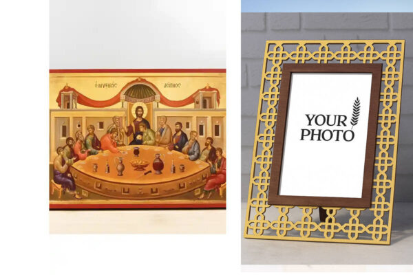 Εικόνα Ορθοδοξίας Πολυτελείας με σχεδιο Σταυρούς μαζι με Βάση σε 8 χρώματα με περίγραμμα χρυσό σε ξύλο Plywood (Πλακάζ) με βάση Ο Μυστικός Δείπνος Ο Ιησούς Χριστός με τους Αποστόλους, Ξύλινη Χειροποίητη Εικόνα Ελληνικού Premium Βυζαντινού Στυλ Κρεμασμένο σε ξύλινη πλάκα Θρησκευτικό θέμα Χειροποίητη Ελληνορθόδοξη εικόνα του Ιησού Χριστού, Κρεμαστή πλάκα βυζαντινής τέχνης, χριστιανική τέχνη Διάσταση 15×11 cm (5,9 x 4,3 ίντσες) INTRAEK3kadro3211-611198