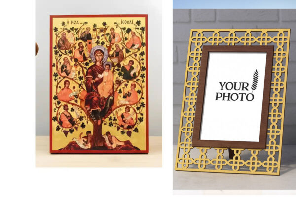 Εικόνα Ορθοδοξίας Πολυτελείας με σχεδιο Σταυρούς μαζι με Βάση σε 8 χρώματα με περίγραμμα χρυσό σε ξύλο Plywood (Πλακάζ) με βάση Virgin Mary The Tree of Jesse, Ξύλινη Χειροποίητη Εικόνα Ελληνικού Premium Βυζαντινού Στυλ Κρεμασμένο σε ξύλινη πλάκα Θρησκευτικό θέμα Χειροποίητη Ελληνορθόδοξη εικόνα του Ιησού Χριστού, Κρεμαστή πλάκα βυζαντινής τέχνης, χριστιανική τέχνη Διάσταση 15×11 cm (5,9 x 4,3 ίντσες) INTRAEK3kadro3211-611196