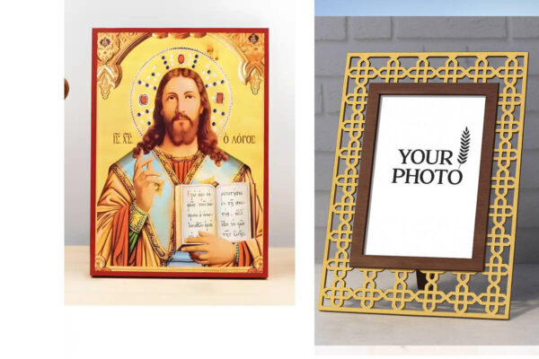Εικόνα Ορθοδοξίας Πολυτελείας με σχεδιο Σταυρούς μαζι με Βάση σε 8 χρώματα με περίγραμμα χρυσό σε ξύλο Plywood (Πλακάζ) με βάση Ο Ιησούς Χριστός Ευλογία – Στην αρχή ήταν ο Κόλπος, Ξύλινη Χειροποίητη Εικόνα Ελληνικής Premium Βυζαντινού Στυλ τοίχου Κρεμασμένη σε Πλάκα Θρησκευτικό Χειροποίητη Ελληνορθόδοξη εικόνα του Ιησού Χριστού, Κρεμαστή πλάκα βυζαντινής τέχνης, χριστιανική τέχνη Διάσταση 15×11 cm (5,9 x 4,3 ίντσες) INTRAEK3kadro3211-611188