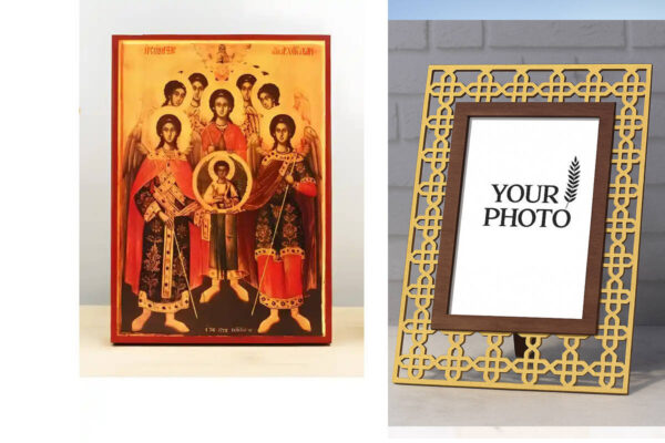 Εικόνα Ορθοδοξίας Πολυτελείας με σχεδιο Σταυρούς μαζι με Βάση σε 8 χρώματα με περίγραμμα χρυσό σε ξύλο Plywood (Πλακάζ) με βάση Σύναξη Αρχαγγέλων με τον Ιησού Χριστό Παλιάς τεχνοτροπίας, Ξύλινη Χειροποίητη Εικόνα Ελληνική Premium Βυζαντινού Στυλ τοίχου Κρεμασμένη σε ξύλινη πλάκα Θρησκευτικό Χειροποίητη Ελληνορθόδοξη εικόνα του Ιησού Χριστού, Κρεμαστή πλάκα βυζαντινής τέχνης, χριστιανική τέχνη Διάσταση 10×7 cm (3,9 x 2,8 ίντσες) INTRAEK3kadro3211-11186