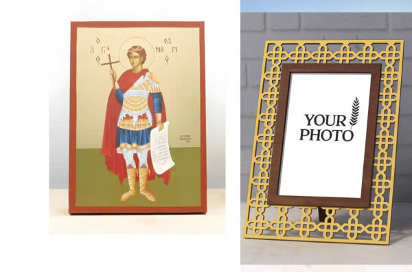 Εικόνα Ορθοδοξίας Πολυτελείας με σχεδιο Σταυρούς μαζι με Βάση σε 8 χρώματα με περίγραμμα χρυσό σε ξύλο Plywood (Πλακάζ) με βάση Άγιος Φανούριος ο Νεοφανής Ολόσωμος, Ξύλινη Χειροποίητη Εικόνα με Φύλλο Χρυσού Ελληνικού Premium Βυζαντινού Στυλ Κρεμαστό τοίχου Θρησκευτικό Θέμα Χειροποίητη Ελληνορθόδοξη εικόνα του Ιησού Χριστού, Κρεμαστή πλάκα βυζαντινής τέχνης, χριστιανική τέχνη Διάσταση 15×11 cm (5,9 x 4,3 ίντσες) INTRAEK3kadro3211-611161