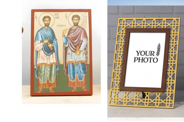 Εικόνα Ορθοδοξίας Πολυτελείας με σχεδιο Σταυρούς μαζι με Βάση σε 8 χρώματα με περίγραμμα χρυσό σε ξύλο Plywood (Πλακάζ) με βάση Άγιοι Άγιοι Ανεργοφόροι Κοσμάς και Δαμιανός, Ξύλινη Χειροποίητη Εικόνα με Φύλλο Χρυσού Ελληνικού Premium Βυζαντινού Στυλ Κρεμαστό τοίχου Θρησκευτικό Θέμα Χειροποίητη Ελληνορθόδοξη εικόνα του Ιησού Χριστού, Κρεμαστή πλάκα βυζαντινής τέχνης, χριστιανική τέχνη Διάσταση 15×11 cm (5,9 x 4,3 ίντσες) INTRAEK3kadro3211-611146