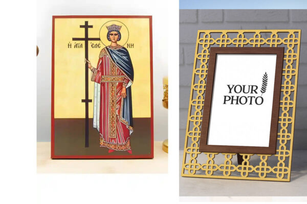 Εικόνα Ορθοδοξίας Πολυτελείας με σχεδιο Σταυρούς μαζι με Βάση σε 8 χρώματα με περίγραμμα χρυσό σε ξύλο Plywood (Πλακάζ) με βάση Αγία «Ελένη» Ελένη η ορθόδοξη αυτοκράτειρα, Ξύλινη Χειροποίητη Εικόνα Ελληνικής Premium Βυζαντινής τεχνοτροπίας Κρεμασμένη σε ξύλινη πλάκα Χειροποίητη Ελληνορθόδοξη εικόνα του Ιησού Χριστού, Κρεμαστή πλάκα βυζαντινής τέχνης, χριστιανική τέχνη Διάσταση 15×11 cm (5,9 x 4,3 ίντσες) INTRAEK3kadro3211-611136