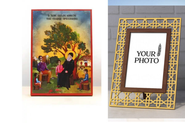 Εικόνα Ορθοδοξίας Πολυτελείας με σχεδιο Σταυρούς μαζι με Βάση σε 8 χρώματα με περίγραμμα χρυσό σε ξύλο Plywood (Πλακάζ) με βάση Ο Άγιος Παΐσιος νουθετεί τους προσκυνητές, Ξύλινη Χειροποίητη Εικόνα Ελληνικής Premium Βυζαντινού Στυλ τοίχου Κρεμασμένη σε ξύλινη πλάκα Θρησκευτικό θέμα Χειροποίητη Ελληνορθόδοξη εικόνα του Ιησού Χριστού, Κρεμαστή πλάκα βυζαντινής τέχνης, χριστιανική τέχνη Διάσταση 15×11 cm (5,9 x 4,3 ίντσες) INTRAEK3kadro3211-611125