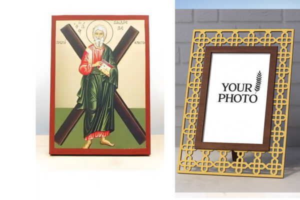 Εικόνα Ορθοδοξίας Πολυτελείας με σχεδιο Σταυρούς μαζι με Βάση σε 8 χρώματα με περίγραμμα χρυσό σε ξύλο Plywood (Πλακάζ) με βάση Άγιος Απόστολος Ανδρέας ο Πρωτόκλητος, Ξύλινη Χειροποίητη Εικόνα με Ψηφιακή Εκτύπωση Ελληνικό Premium Βυζαντινού Στυλ Κρεμαστή στον τοίχο Θρησκευτικό Θέμα Χειροποίητη Ελληνορθόδοξη εικόνα του Ιησού Χριστού, Κρεμαστή πλάκα βυζαντινής τέχνης, χριστιανική τέχνη Διάσταση 15×11 cm (5,9 x 4,3 ίντσες) INTRAEK3kadro3211-611108