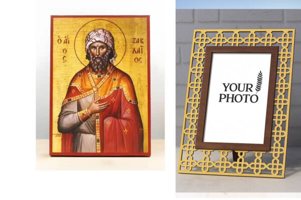 Εικόνα Ορθοδοξίας Πολυτελείας με σχεδιο Σταυρούς μαζι με Βάση σε 8 χρώματα με περίγραμμα χρυσό σε ξύλο Plywood (Πλακάζ) με βάση Άγιος Ζακχαίος Ιεροσολύμων, Ξύλινη Χειροποίητη Εικόνα Ελληνικής Κορυφαίας Βυζαντινής Στυλ Κρεμασμένη σε ξύλινη πλάκα Χειροποίητη Ελληνορθόδοξη εικόνα του Ιησού Χριστού, Κρεμαστή πλάκα βυζαντινής τέχνης, χριστιανική τέχνη Διάσταση 15×11 cm (5,9 x 4,3 ίντσες) INTRAEK3kadro3211-611096