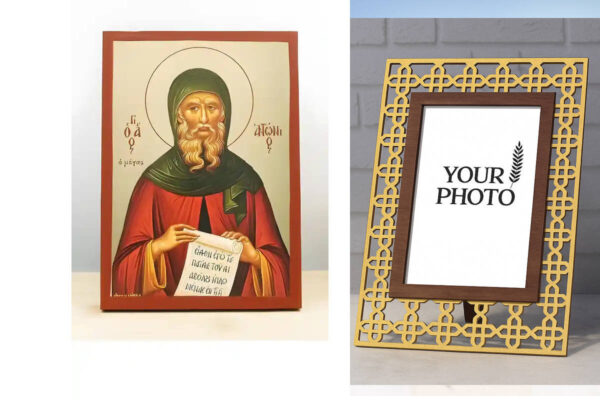 Εικόνα Ορθοδοξίας Πολυτελείας με σχεδιο Σταυρούς μαζι με Βάση σε 8 χρώματα με περίγραμμα χρυσό σε ξύλο Plywood (Πλακάζ) με βάση Άγιος Αντώνιος ο Μέγας, Ξύλινη χειροποίητη εικόνα με χρυσό φύλλο θρησκευτικό θέμα Ελληνικό Premium Βυζαντινού ρυθμού Χειροποίητη Ελληνορθόδοξη εικόνα του Ιησού Χριστού, Κρεμαστή πλάκα βυζαντινής τέχνης, χριστιανική τέχνη Διάσταση 15×11 cm (5,9 x 4,3 ίντσες) INTRAEK3kadro3211-611092
