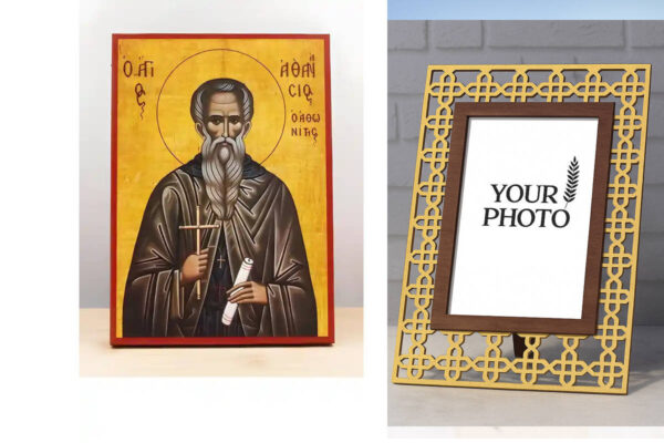 Εικόνα Ορθοδοξίας Πολυτελείας με σχεδιο Σταυρούς μαζι με Βάση σε 8 χρώματα με περίγραμμα χρυσό σε ξύλο Plywood (Πλακάζ) με βάση Άγιος Αθανάσιος ο Αθωνίτης, Ξύλινη Χειροποίητη Εικόνα Ελληνικής Premium Βυζαντινού Στυλ Κρεμασμένη σε ξύλινη πλάκα Χειροποίητη Ελληνορθόδοξη εικόνα του Ιησού Χριστού, Κρεμαστή πλάκα βυζαντινής τέχνης, χριστιανική τέχνη Διάσταση 15×11 cm (5,9 x 4,3 ίντσες) INTRAEK3kadro3211-611084