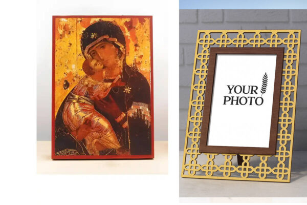 Εικόνα Ορθοδοξίας Πολυτελείας με σχεδιο Σταυρούς μαζι με Βάση σε 8 χρώματα με περίγραμμα χρυσό σε ξύλο Plywood (Πλακάζ) με βάση Παναγία του Βλαδίμηρου με τον Ιησού, Ξύλινη Χειροποίητη Εικόνα Ελληνικού Βυζαντινού Στυλ τοίχου Κρεμασμένη σε ξύλινη πλάκα Θρησκευτικό θέμα Χειροποίητη Ελληνορθόδοξη εικόνα του Ιησού Χριστού, Κρεμαστή πλάκα βυζαντινής τέχνης, χριστιανική τέχνη Διάσταση 15×11 cm (5,9 x 4,3 ίντσες) INTRAEK3kadro3211-611078