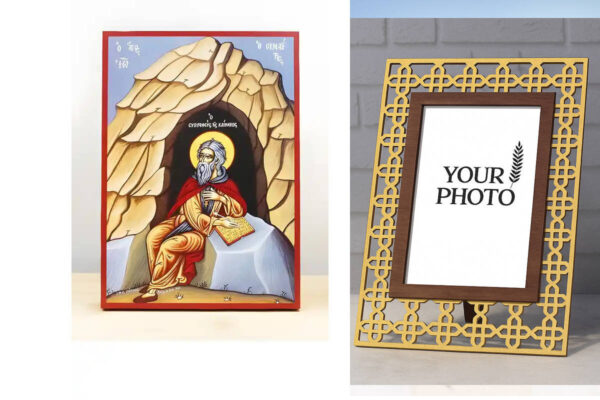 Εικόνα Ορθοδοξίας Πολυτελείας με σχεδιο Σταυρούς μαζι με Βάση σε 8 χρώματα με περίγραμμα χρυσό σε ξύλο Plywood (Πλακάζ) με βάση Άγιος Ιωάννης Κλίμακος του Σινά, συγγραφέας του «The Ladder», Ξύλινη Χειροποίητη Εικόνα Ελληνικού Premium Βυζαντινού Στυλ τοίχου Κρεμασμένη σε ξύλινη πλάκα Χειροποίητη Ελληνορθόδοξη εικόνα του Ιησού Χριστού, Κρεμαστή πλάκα βυζαντινής τέχνης, χριστιανική τέχνη Διάσταση 10×7 cm (3,9 x 2,8 ίντσες) INTRAEK3kadro3211-11229