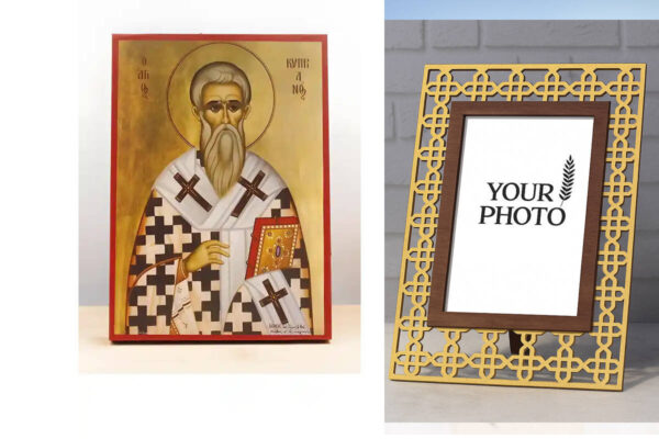 Εικόνα Ορθοδοξίας Πολυτελείας με σχεδιο Σταυρούς μαζι με Βάση σε 8 χρώματα με περίγραμμα χρυσό σε ξύλο Plywood (Πλακάζ) με βάση Άγιος Κύπριος «Κυπριανός», Ξύλινη Χειροποίητη Εικόνα Ελληνικού Βυζαντινού Στυλ Κρεμαστή σε ξύλινη πλάκα Χειροποίητη Ελληνορθόδοξη εικόνα του Ιησού Χριστού, Κρεμαστή πλάκα βυζαντινής τέχνης, χριστιανική τέχνη Διάσταση 15×11 cm (5,9 x 4,3 ίντσες) INTRAEK3kadro3211-611057