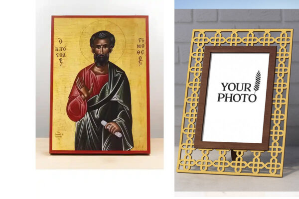 Εικόνα Ορθοδοξίας Πολυτελείας με σχεδιο Σταυρούς μαζι με Βάση σε 8 χρώματα με περίγραμμα χρυσό σε ξύλο Plywood (Πλακάζ) με βάση Άγιος Απόστολος Τιμόθεος, Ξύλινη Χειροποίητη Εικόνα Ελληνικής Premium Βυζαντινού Στυλ Κρεμαστή σε ξύλινη πλάκα Θρησκευτικό θέμα Χειροποίητη Ελληνορθόδοξη εικόνα του Ιησού Χριστού, Κρεμαστή πλάκα βυζαντινής τέχνης, χριστιανική τέχνη Διάσταση 15×11 cm (5,9 x 4,3 ίντσες) INTRAEK3kadro3211-611054