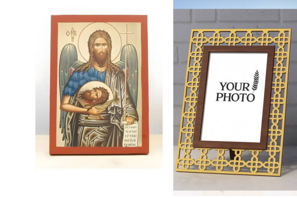 Εικόνα Ορθοδοξίας Πολυτελείας με σχεδιο Σταυρούς μαζι με Βάση σε 8 χρώματα με περίγραμμα χρυσό σε ξύλο Plywood (Πλακάζ) με βάση Άγιος Ιωάννης ο Βαπτιστής, Ξύλινη χειροποίητη εικόνα με χρυσό φύλλο θρησκευτικό θέμα Ελληνικό Premium Βυζαντινού ύφους Χειροποίητη Ελληνορθόδοξη εικόνα του Ιησού Χριστού, Κρεμαστή πλάκα βυζαντινής τέχνης, χριστιανική τέχνη Διάσταση 15×11 cm (5,9 x 4,3 ίντσες) INTRAEK3kadro3211-611035