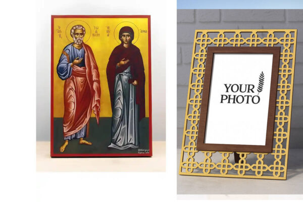 Εικόνα Ορθοδοξίας Πολυτελείας με σχεδιο Σταυρούς μαζι με Βάση σε 8 χρώματα με περίγραμμα χρυσό σε ξύλο Plywood (Πλακάζ) με βάση Άγιοι Ιωακείμ και Άννα, Ξύλινη Χειροποίητη Εικόνα Ελληνικής Premium Βυζαντινού Στυλ Κρεμασμένη σε ξύλινη πλάκα Χειροποίητη Ελληνορθόδοξη εικόνα του Ιησού Χριστού, Κρεμαστή πλάκα βυζαντινής τέχνης, χριστιανική τέχνη Διάσταση 15×11 cm (5,9 x 4,3 ίντσες) INTRAEK3kadro3211-611032