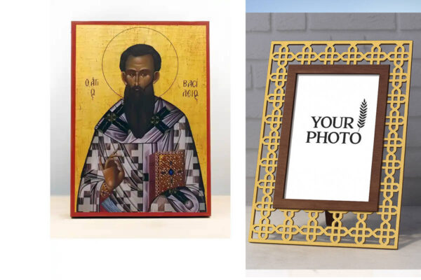 Εικόνα Ορθοδοξίας Πολυτελείας με σχεδιο Σταυρούς μαζι με Βάση σε 8 χρώματα με περίγραμμα χρυσό σε ξύλο Plywood (Πλακάζ) με βάση Άγιος Βασίλειος ο Μέγας της Καισάρειας, Ξύλινη Χειροποίητη Εικόνα Ελληνικού Βυζαντινού Στυλ Κρεμαστή σε ξύλινη πλάκα Χειροποίητη Ελληνορθόδοξη εικόνα του Ιησού Χριστού, Κρεμαστή πλάκα βυζαντινής τέχνης, χριστιανική τέχνη Διάσταση 15×11 cm (5,9 x 4,3 ίντσες) INTRAEK3kadro3211-611026
