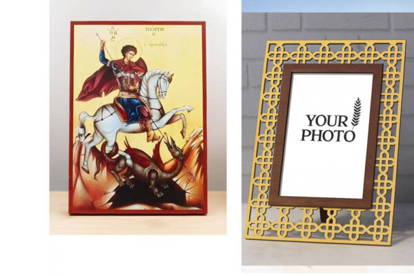 Εικόνα Ορθοδοξίας Πολυτελείας με σχεδιο Σταυρούς μαζι με Βάση σε 8 χρώματα με περίγραμμα χρυσό σε ξύλο Plywood (Πλακάζ) με βάση Ο Άγιος Γεώργιος και ο Δράκος, Ξύλινη Χειροποίητη Εικόνα Ελληνικού Premium Βυζαντινού Στυλ Κρεμασμένο σε ξύλινη πλάκα Χειροποίητη Ελληνορθόδοξη εικόνα του Ιησού Χριστού, Κρεμαστή πλάκα βυζαντινής τέχνης, χριστιανική τέχνη Διάσταση 15×11 cm (5,9 x 4,3 ίντσες) INTRAEK3kadro3211-611008