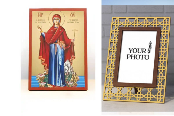 Εικόνα Ορθοδοξίας Πολυτελείας με σχεδιο Σταυρούς μαζι με Βάση σε 8 χρώματα με περίγραμμα χρυσό σε ξύλο Plywood (Πλακάζ) με βάση Παναγία η Προστάτιδα του Αγίου Όρους, Ξύλινη Χειροποίητη Εικόνα με Αλουμινόχαρτο Ελληνικού Βυζαντινού Στυλ επιτοίχιας υψηλής ποιότητας Χειροποίητη Ελληνορθόδοξη εικόνα του Ιησού Χριστού, Κρεμαστή πλάκα βυζαντινής τέχνης, χριστιανική τέχνη Διάσταση 15×11 cm (5,9 x 4,3 ίντσες) INTRAEK3kadro3211-611007