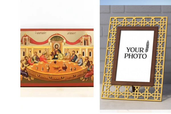 Εικόνα Ορθοδοξίας Πολυτελείας με σχεδιο Σταυρούς μαζι με Βάση σε 8 χρώματα με περίγραμμα χρυσό σε ξύλο Plywood (Πλακάζ) με βάση Ο Μυστικός Δείπνος, Ιησούς Χριστός με Αποστόλους, Ξύλινη Χειροποίητη Εικόνα με Φύλλο Χρυσού Αλουμινίου Κρεμασμένο σε ξύλινη πλάκα Ελληνικού Βυζαντινού Στυλ Χειροποίητη Ελληνορθόδοξη εικόνα του Ιησού Χριστού, Κρεμαστή πλάκα βυζαντινής τέχνης, χριστιανική τέχνη Διάσταση 15×11 cm (5,9 x 4,3 ίντσες) INTRAEK3kadro3211-611000