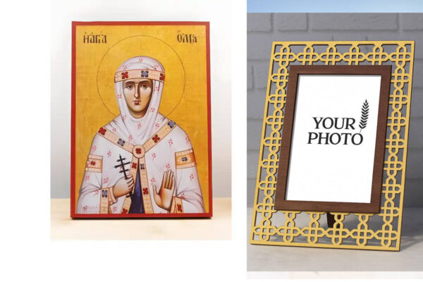 Εικόνα Ορθοδοξίας Πολυτελείας με σχεδιο Σταυρούς μαζι με Βάση σε 8 χρώματα με περίγραμμα χρυσό σε ξύλο Plywood (Πλακάζ) με βάση Αγία Όλγα του Κιέβου, Ξύλινη Χειροποίητη Εικόνα Ελληνικού Premium Βυζαντινού Στυλ Κρεμασμένη σε ξύλινη πλάκα Χειροποίητη Ελληνορθόδοξη εικόνα του Ιησού Χριστού, Κρεμαστή πλάκα βυζαντινής τέχνης, χριστιανική τέχνη Διάσταση 15×11 cm (5,9 x 4,3 ίντσες) INTRAEK3kadro3211-610983