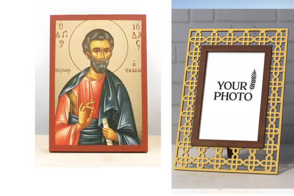 Εικόνα Ορθοδοξίας Πολυτελείας με σχεδιο Σταυρούς μαζι με Βάση σε 8 χρώματα με περίγραμμα χρυσό σε ξύλο Plywood (Πλακάζ) με βάση Άγιος Απόστολος Ιούδας Θαδδαίος, Ξύλινη Χειροποίητη Εικόνα με Ψηφιακή Εκτύπωση Ελληνικό Premium Βυζαντινού Στυλ Κρεμαστό τοίχου Θρησκευτικό Θέμα Χειροποίητη Ελληνορθόδοξη εικόνα του Ιησού Χριστού, Κρεμαστή πλάκα βυζαντινής τέχνης, χριστιανική τέχνη Διάσταση 15×11 cm (5,9 x 4,3 ίντσες) INTRAEK3kadro3211-610956