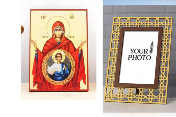 Εικόνα Ορθοδοξίας Πολυτελείας με σχεδιο Σταυρούς μαζι με Βάση σε 8 χρώματα με περίγραμμα χρυσό σε ξύλο Plywood (Πλακάζ) με βάση Παναγία με τον Ιησού Πιο ευρύχωρο κι από τους ουρανούς «Πλατυτέρα», Ξύλινη Χειροποίητη Εικόνα Ελληνικής Βυζαντινής Στυλ Κρεμαστή σε τοίχο Χειροποίητη Ελληνορθόδοξη εικόνα του Ιησού Χριστού, Κρεμαστή πλάκα βυζαντινής τέχνης, χριστιανική τέχνη Διάσταση 15×11 cm (5,9 x 4,3 ίντσες) INTRAEK3kadro3211-610933